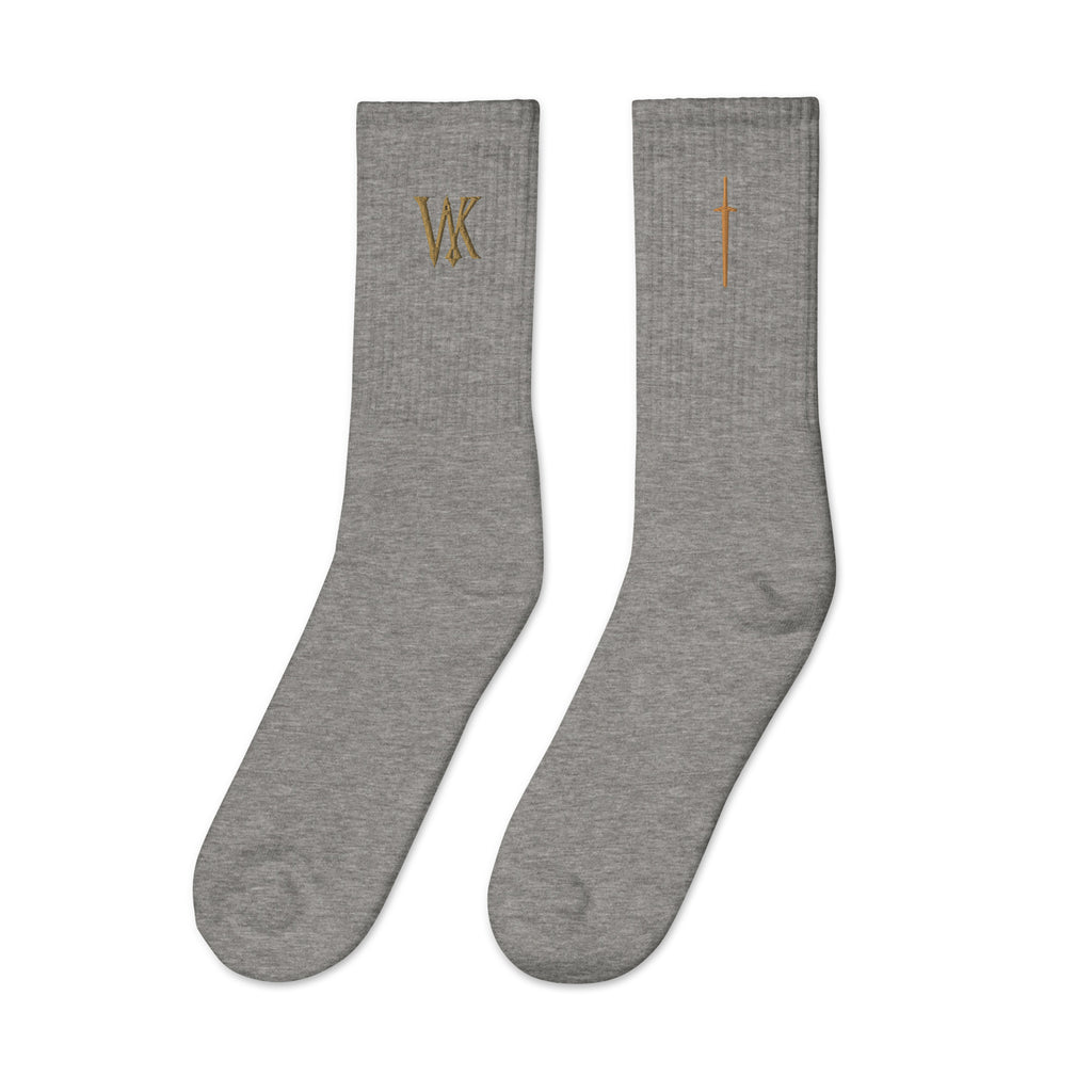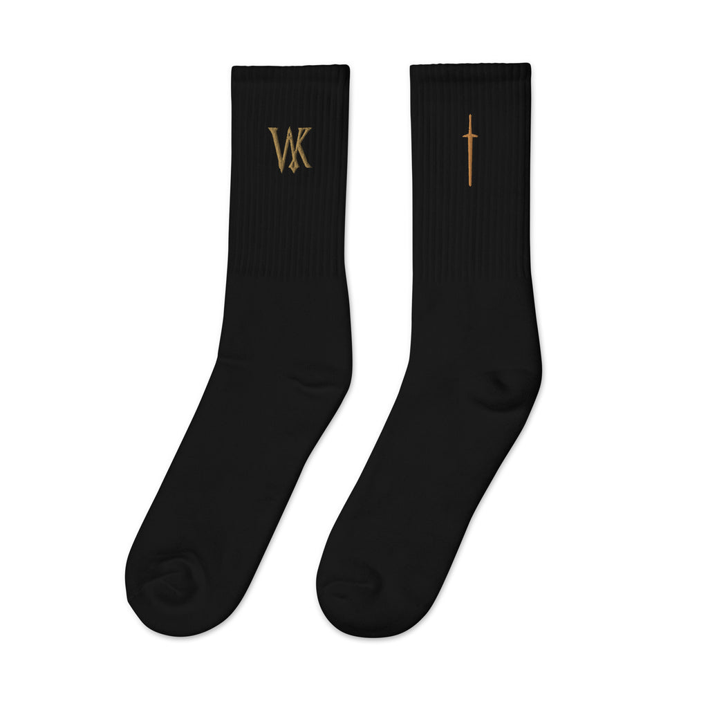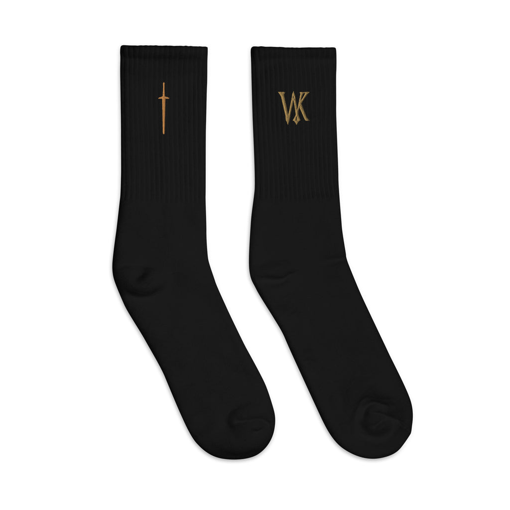 US-made embroidered socks.